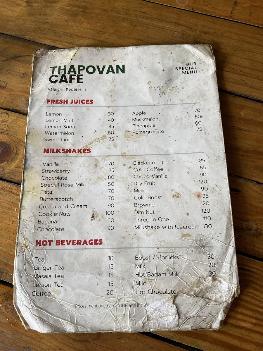 Whether you're stopping by for a quick snack, a refreshing drink, or simply to stretch your legs on a long drive, Thapovan Cafe is a hidden gem worth experiencing. Embrace the welcoming atmosphere, indulge in delightful food, and enjoy the beauty of nature right outside your window. This is one cafe you won’t want to miss on your journey through Kodaikanal!